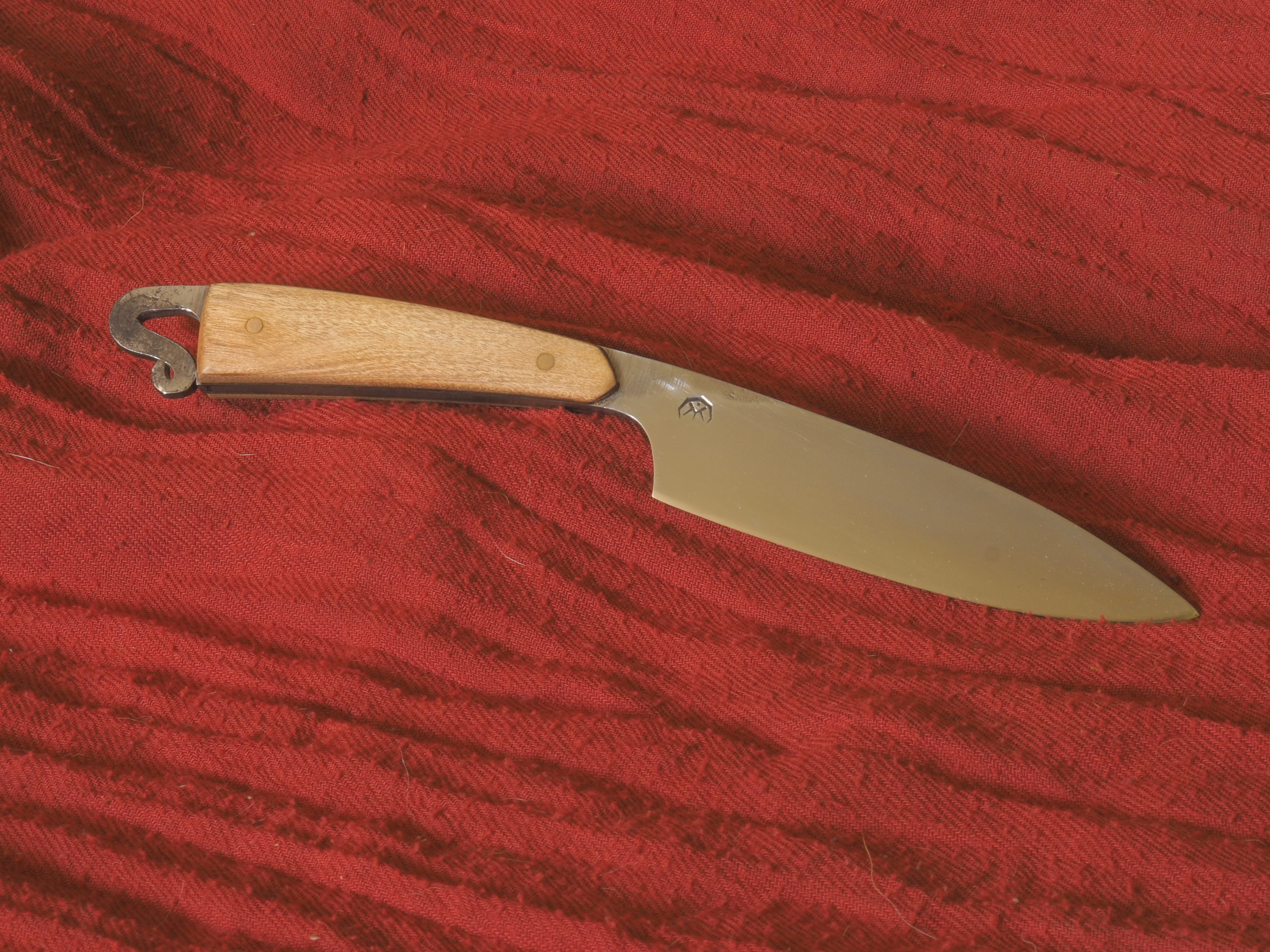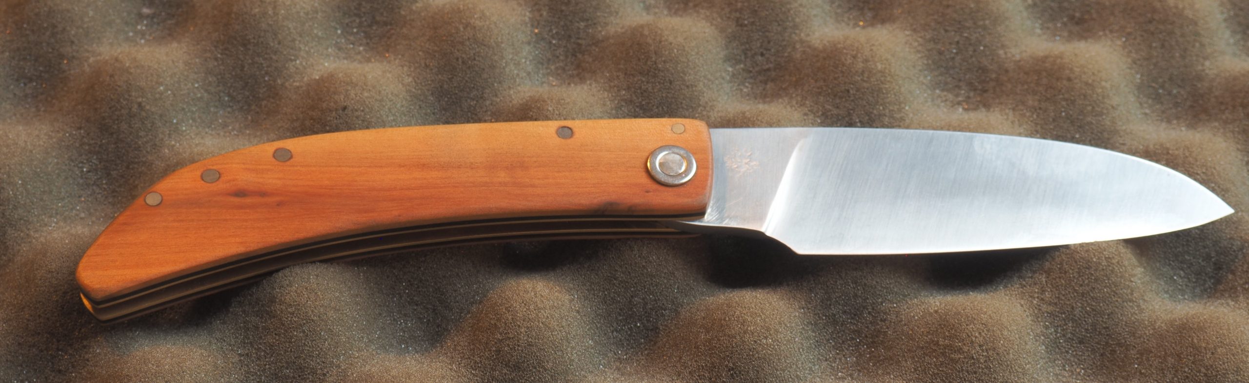 manche en olivier texturé, rondelles inox et rivets matés