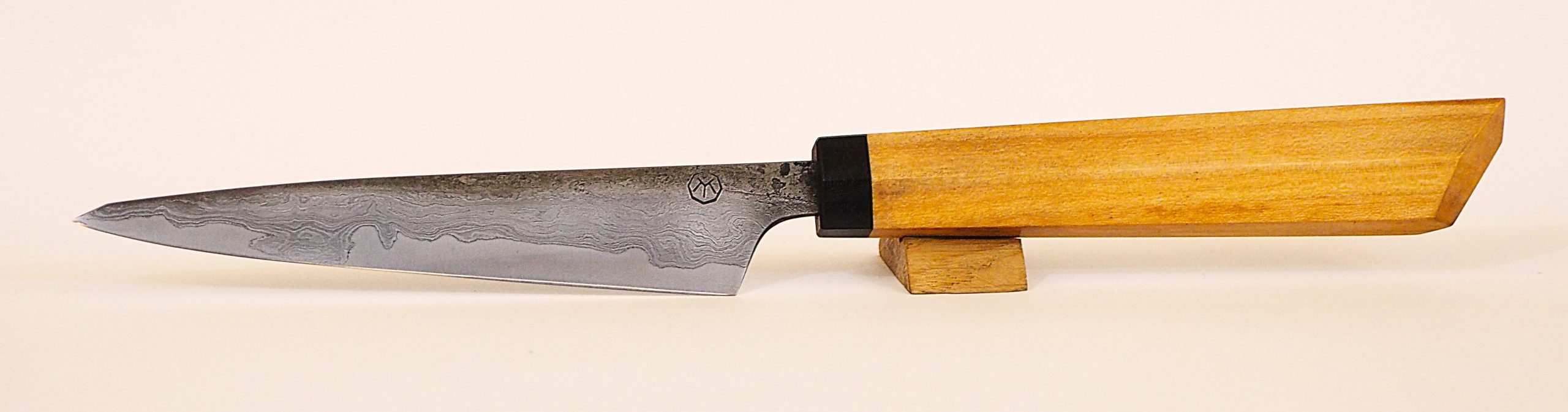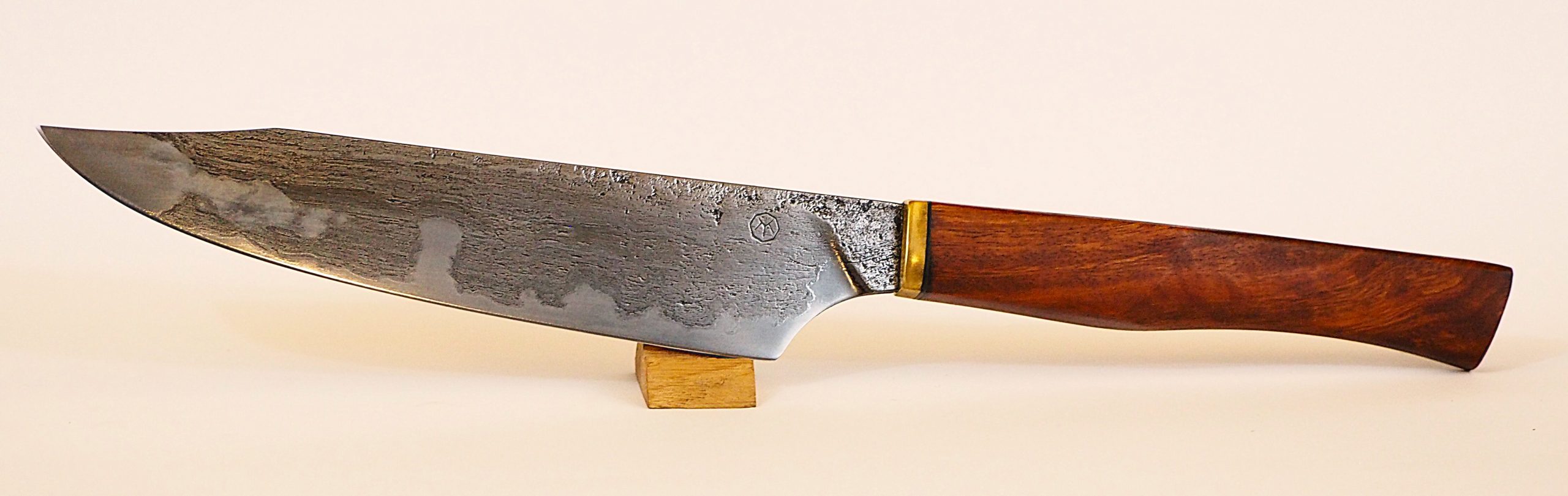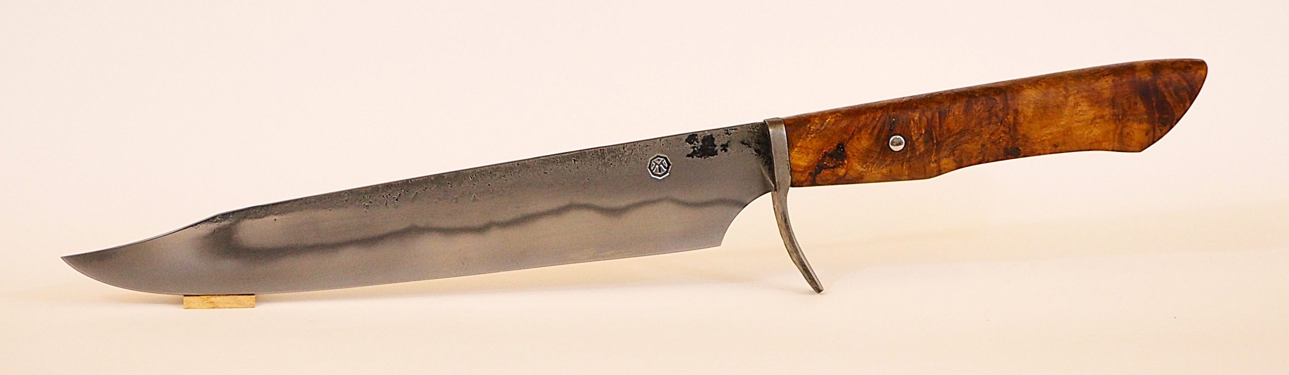 grand bowie, acier XC75, trempe selective, manche en loupe d’erable